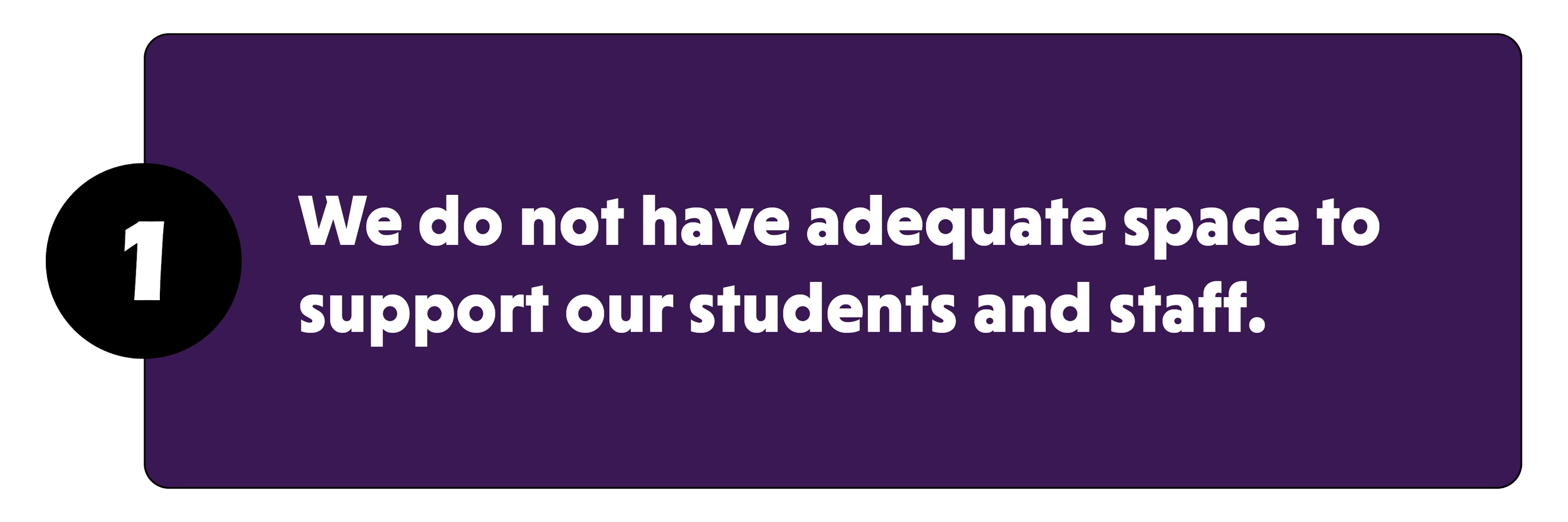 With our building being fully utilized, class sizes exceed recommended room capacity levels, which limits educational opportunities and puts an unnecessary strain on staff to provide the best possible learning environment. In fact, our capacity and space analysis identified that our building is operating at a 99% utilization rather than 75-80%, which is typical for similar-sized buildings. Although a slight enrollment decrease is expected over the next decade, providing appropriate space now best positions our students and staff for the future, especially as education evolves.